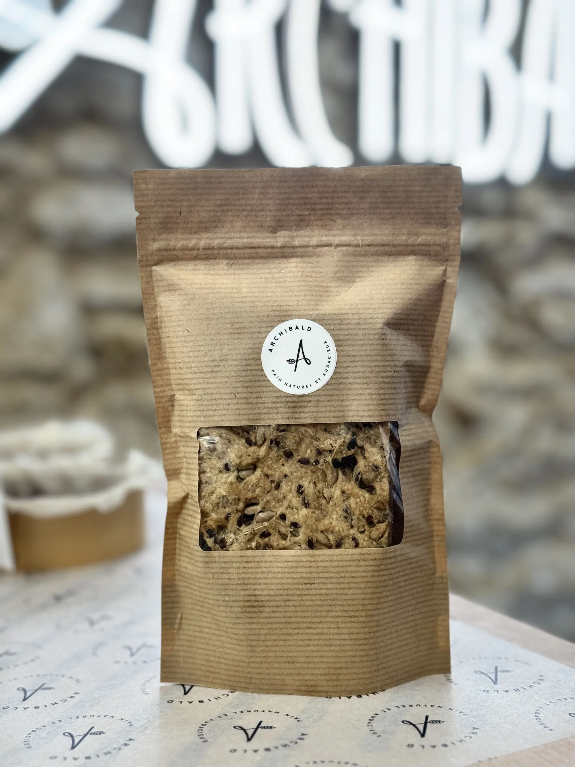 Farine de blé T110, levain naturel de seigle complet T170, graines de tournesol, lin, courge, huile d'olive, herbes de Provence, sel, eau