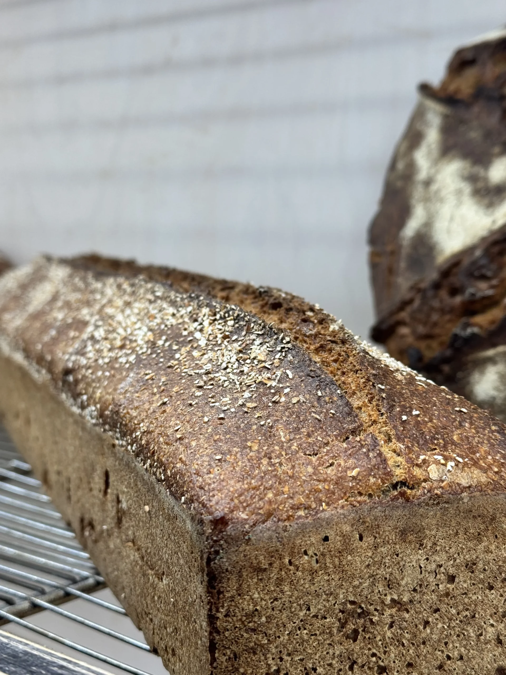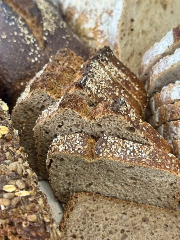 Élaboré à partir de farine complète bio et d’un levain naturel, le Pain Intégral est un allié du quotidien. Riche en minéraux et naturellement faible en acide phytique, il offre une meilleure digestibilité qu’un pain complet classique. Sa teneur élevée en fibres en fait un pain idéal pour soutenir le transit tout en apportant une vraie sensation de satiété. Avec son goût légèrement acidulé et sa mie dense mais fondante, il accompagne à merveille un poisson fumé ou un fromage à pâte molle.